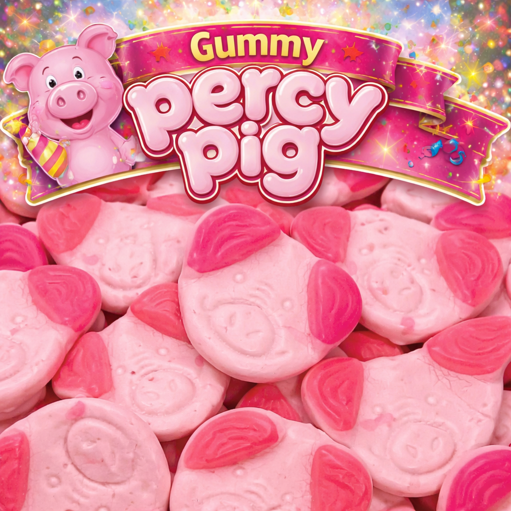 Light up any party with these scrumptious Gummy Percy Pigs! Soft and fruity, their pig-shaped sweetness will have your guests oinking with delight! Enjoy the best of pigs in a blanket – a delicious, chewy snack that's sure to put a smiled oink on everyone's face! Cherry, Strawberry & Apple Flavour.
