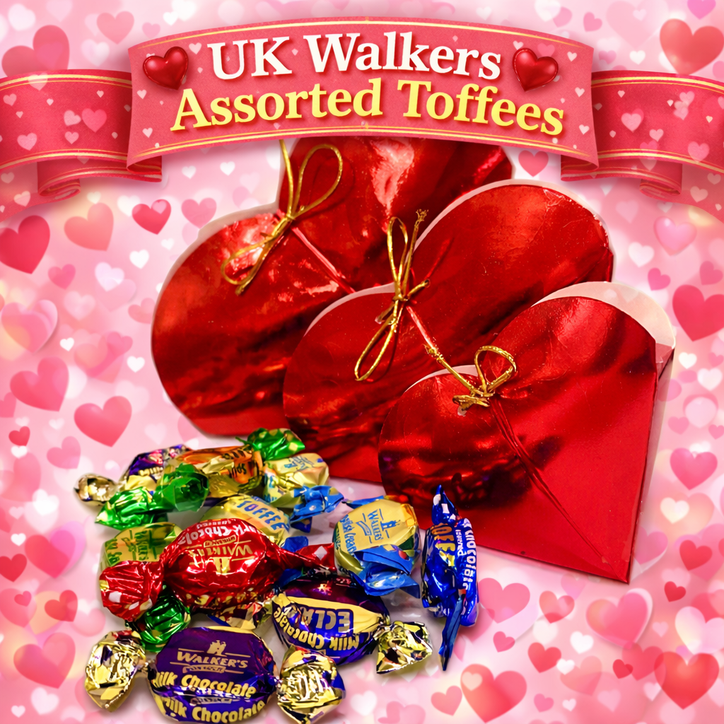 Satisfy every craving with Walkers' assorted toffees and chocolate eclairs! This mix of English sweets includes Creamy Toffee, Milk Chocolate Eclair, Dark Chocolate-covered Toffee, Milk Chocolate-covered Toffee, Banana Split Eclair, Treacle Toffee and Salted Caramel Toffee - something for everyone! Who said you can't have it all? A perfect gift for your Valentine!