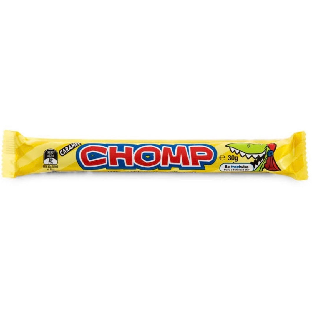 Cadbury Chomp is a brand of chocolate bar currently manufactured by Cadbury, popular in Australia and the United Kingdom. ... The Australian Chomp consists of a layer of wafer and caramel, coated in compound chocolate. Made in Australia
