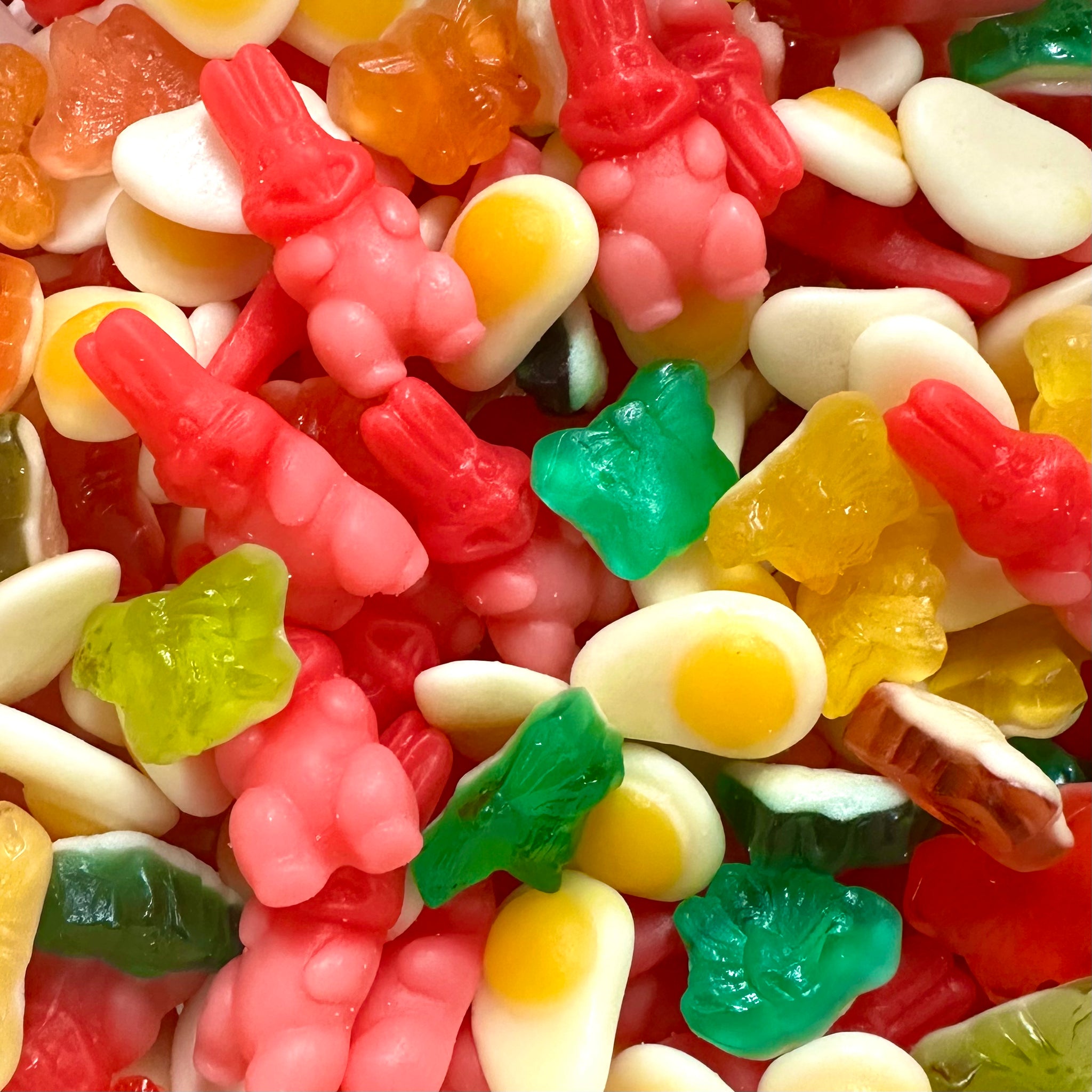 Hop into flavor town with our Easter Bunnies, Butterflies & Fried Eggs! These yummy gummy lollies are the sweet, squishy treats that’ll tickle your taste buds and make your mouth do a happy dance. Perfect for sharing (or not—no judgment here!). Get ready for a hop-tastic snacking adventure!