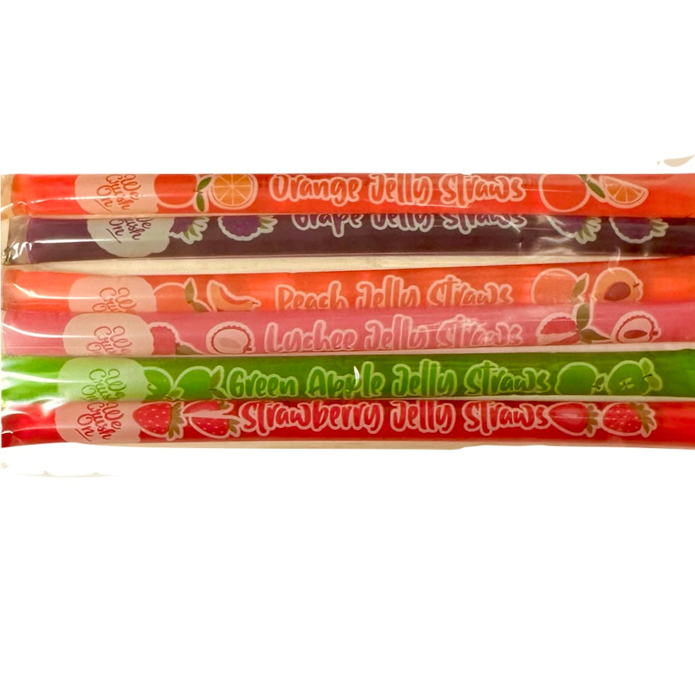 We Crush On Jelly Straws - the perfect combo of chewy fruitiness and soft jelly. This 6 pack Grape, Strawberry, Orange, Peach, Lychee, and Green Apple are perfect for all ages and is sure to be a hit (seen on tick tok)! Grab a handful and get ready to crush on these tasty straws!
