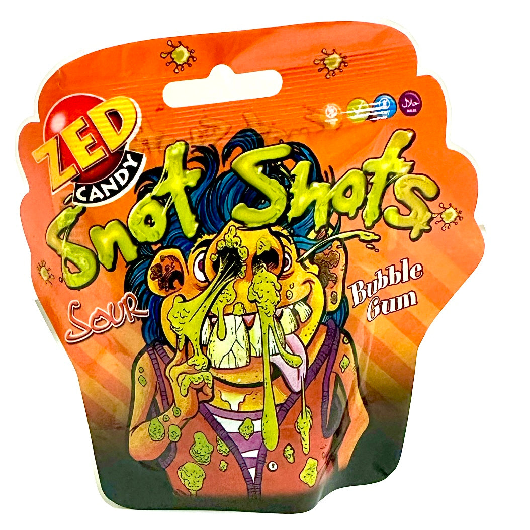 Pucker up for our Snot Shots Sour Bubblegum! These green apple flavored treats deliver a mouth-puckering sourness that transforms into sweet, bubble-blowing goodness. Perfect for brave taste-testers and pranksters who love grossing out their friends with the icky-looking but deliciously tangy bubblegum experience!